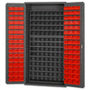 36" wide, 14 gauge, lockable cabinet, with 96 blue hook-on bins, 2 adjustable shelves, 60 drawer, flush door style, gray Mfg Part#: 3501-DLP-60DR11-96-2S5295
