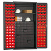 36" wide, 14 gauge, lockable cabinet, with 58 yellow hook-on bins, 1 fixed shelf, 1 adjustable shelf, 4 drawers, 12 door shelves, flush door style, gray Mfg Part#: 3501584RDR-95