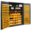 48" wide, 14 gauge, lockable cabinet, with 138 yellow hook-on bins, 3 adjustable shelves, flush door style, gray Mfg Part#: 3502-138-3S-1795