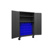 48" wide, 14 gauge, lockable mobile cabinet, with 42 red hook-on bins, flush door style, gray Mfg Part#: 3502M-BLP-42-1795