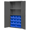 36" wide, 14 gauge, lockable cabinet, with 14 yellow hook-on bins, 2 adjustable shelves, flush door style, gray Mfg Part#: 3602-BLP-14-2S-95