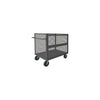 3 Sided Mesh Truck with 6" x 2" Polyurethane casters, (2) rigid, (2) swivel, 3 shelves and forklift pockets, assembled
