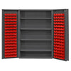 48" wide, 14 gauge, lockable cabinet, with 128 blue hook-on bins, 4 adjustable shelves, deep door style, gray Mfg Part#: DC48-128-4S-5295