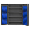 48" wide, 14 gauge, lockable cabinet, with 128 yellow hook-on bins, 4 adjustable shelves, deep door style, gray Mfg Part#: DC48-128-4S-95