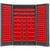 Heavy Duty Cabinet, 14 Gauge, 48 x 24 x 72, 2 Adjustable Shelves, 84 Yellow Bins, 4" Deep Box Doors with Louvered Panel, 6 Door Shelves, Lockable, Chrome Handle with Keys, Gray