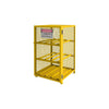 Self Closing, Gas cylinder cabinet, single door, angle iron and expanded metal, for horizontal storage of 20 and 33 lb. LPG cylinders, 16 cylinder capacity, safety yellow