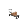 Flat Bar Platform Truck with 5" x 1-1/2" Polyolefin casters, (2) swivel and (2) rigid with side brakes, 2 shelves, and a tubular handle, gray