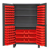 48" wide, 14 gauge, lockable cabinet, with 137 blue hook-on bins, 3 adjustable shelves, flush door style, gray Mfg Part#: JC-137-3S-5295