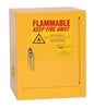 All the features of larger cabinets are built right into these space–saving models. 18–gauge double wall construction with 1 1/2" air space between panels and a 2" raised leakproof sill at the bottom. Door handle has three–point key lock. Self–closing doors have fusible link which melts at 165 degrees, automatically closing the doors and protecting your work place. Meets OSHA and NFPA Code 30 specifications.