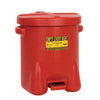 Poly Oily Waste Cans are constructed of high-density polyethylene (HDPE) and offer fire safe temporary storage of solvent rags, waste rags, shavings and other materials subject to spontaneous combustion. Will not rust or dent, are resistant to most chemical compounds, have no seam for a leak proof construction, and feature self-closing lid with foot lever and with a flared base for added stability. Available in Red, Yellow or Black. FM Approved. 100 percent designed and manufactured in the USA.