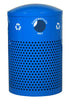 Classic Streetscape™ heavy-duty, all steel, 35.5 gal capacity outdoor recycling receptacle in Recycle Blue gloss finish. These impressive heavy-duty, all steel Recycling Receptacles are durable enough for any outdoor climate and feature a co-mingle lid that provides a 5” diameter opening, overlapping a 2” wide by 12” long opening. Finish is weather resistant EXL-COAT™ Powder Coat. Unit is solidly built with 1-1/2" wide x 3/16" thick welded steel bars. Bottom consists of steel channels so unit can be secured to the ground if desired. Adjustable leveling glides keep unit stable on uneven surfaces. The unit includes a color matched removable LLDPE plastic liner with lift openings. Unit contains over 30% recycled material and 100% post-consumer recyclable.