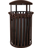 Classic Streetscape™ heavy-duty, all steel, 35.5 gal capacity outdoor trash receptacle with rain canopy in Black Gloss. These impressive heavy-duty, all steel Trash Receptacles are durable enough for any outdoor climate. Finish is weather resistant EXL-COAT™ Powder Coat. Solidly built with 1-1/2" wide x 3/16" thick welded steel bars. Bottom consists of steel U-channels that allows securing to the ground if desired. Adjustable leveling glides keep unit stable on uneven surfaces. Includes a removable LLDPE plastic liner with lift openings. Contains over 30% recycled material and 100% post-consumer recyclable.
