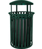 Classic Streetscape™ heavy-duty, all steel, 35.5 gal capacity outdoor trash receptacle with rain canopy in Coffee Gloss. These impressive heavy-duty, all steel Trash Receptacles are durable enough for any outdoor climate. Finish is weather resistant EXL-COAT™ Powder Coat. Solidly built with 1-1/2" wide x 3/16" thick welded steel bars. Bottom consists of steel U-channels that allows securing to the ground if desired. Adjustable leveling glides keep unit stable on uneven surfaces. Includes a removable LLDPE plastic liner with lift holes. Contains over 30% recycled material and 100% post-consumer recyclable.