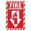 ZING Eco Safety Sign "FIRE EXTINGUISHER" is designed to meet OSHA requirements. Highly visible sign includes a graphic to effectively communicate fire equipment location to emergency responders and employees. Sign is made from durable high-impact recycled polystyrene self-adhesive that is resistant to solvents, moisture, scuffing and UV exposure as well as having high tear resistance. Recycled material is a minimum of 70% post-industrial and supports sustainability initiatives and LEED credits. Sign measures 10"H x 7"W. Made in the USA.