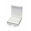 22" wide, plastic, empty, first aid kit with gasket, no partition, holds 16 packages, color: white Mfg Part#: 512G-43-N/P