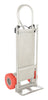 This lightweight aluminum hand truck features an integral work bench. Work bench conveniently folds flat for storage. Now a sturdy work bench can be moved to where it is needed most. Provides for a more comfortable and ergonomically correct work position. P-handle design allows for easy maneuverability. MFG Part# ALUM-P-TB-UFBK