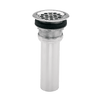 Model 6455 is a polished stainless steel flat waste strainer with grid, washer locknut and slip joint tailpiece. Flange diameter 4-1/2" (11.4 cm) fits 3-1/2" to 4" (8.9 to 10.2 cm) drain holes; 1/1-2" O.D. (3.8) slip joint tailpiece is 4" (10.2 cm) long.