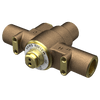 Model 9201H, low-lead Emergency Valve (patent pending), thermostatically mixes hot and cold water to provide a safe fluid supply for emergency showers and eyewash equipment. The valve contains a secondary high temperature limit valve to provide additional protection to the user in the event of main tempering valve malfunction. Additionally, to ensure a fail-safe water supply for emergency shower and eyewash stations, a series of cold water by-pass valves open in the event of hot water pressure loss. (No gauges supplied - ASSE 1071 standard recommends gauges be placed 5 to 8 feet downstream for the most accurate measurement.)