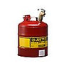 Compliant and economical Justrite Type I safety cans reduce fire risks and make everyday use of flammables easier and safer. Protection features include a 3.5" long chemical resistant stainless steel flame arrester that stops flashback ignition, provides faster liquid flow, and offers exceptional durability. The self–venting, self–closing leakproof lid prevents ruptures from pressure build–up and controls vapors and spills. Warning label includes an extra large ID zone for user labeling of contents to avoid misuse, reduce the potential for incompatible mixtures, or may be used to designate department or individual owner. Made of galvanized steel with a tough powder paint finish, can capacities 1 gallon and above have ample headspace to accommodate oil additives. Available in your choice of Red, Yellow, Blue, or Green. Please specify color when ordering.