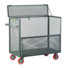 Bulk storage and transport trucks have 24" interior height. Overall height is 32" with 6" x 2" Mold–On Rubber casters, 2 swivel and 2 rigid. Capacity: 2,000–lbs. 14 gauge steel sides in angle iron frame. Deck Size: 30" x 48".