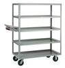 Expanded metal sides and top affords good visibility and air flow. Solid steel bottom deck provides added durability. Side drop–gate with spring latches folds down, allowing easier loading and unloading. Double hinged top cover features padlock hasp for secure storage. Interior height is 36". Overall height is 47" and capacity 3600 lbs. with 6" x 2" polyurethane casters, 2 swivel and 2 rigid. Dimensions: 30" x 48".