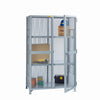 Secure, visible storage for larger, bulkier items. 13 gauge expanded metal has small 3/4" x 1–1/2" diamond–shaped openings. Doors swing open a full 270 degrees, back to the sides and out of the way. 4" underclearance for transporting with pallet truck or fork lift. 72" interior height, 78" overall height. This unit comes with 2 center shelves. Welded unit ships set up and ready for immediate use. Dimensions: 36" x 60".