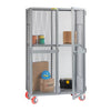 Secure, visible storage for larger, bulkier items. 13 gauge expanded metal has small 3/4" x 1-1/2" diamond-shaped openings. Doors swing open a full 270 degrees and feature a padlockable slide latch. 2 swivel, 2 rigid 6" non-marking polyurethane casters. Floor lock to stop unwanted movement. 72" interior height, 81" overall height. Welded unit ships set up and ready for immediate use. Durable powder coated gray finish.