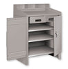 Constructed of 14 gauge steel top and sides. These enclosed body desks come complete with doors, 3 shelves, and 1 drawer. Comes with keyed handle. Dimensions: 36"W x 30"D x 43"H. Overall height 48".