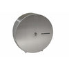 Bradley Toilet Tissue Dispenser. 18 gauge satin finish stainless steel cabinet. 18 gauge satin finish stainless steel mounting plate. Satin finish stainless steel door. Drawn one–piece construction. Tumbler–locked door swings down to replenish tissue roll. Dispensing mechanism made from chemical and flame–retardant ABS . Dispenses (2) jumbo rolls of 9in. diameter toilet tissue using 2–1/4in. or 3in. core by using core adapters. Refill indicator viewing slots reveal tissue level. Non–controlled delivery. Surface Mounted .