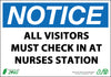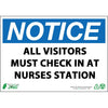 ZING Eco Safety Sign "NOTICE VISITORS MUST CHECK IN AT NURSES STATION" communicates messages that inform of designated areas and important safety precautions. Sign is made from high quality 94% recycled aluminum that is UL Validated for recycled content which substantiates material compliance with various green codes, standards, and procurement policies including the LEED Green Building Rating System, IgCC, GSA Advantage, ASHRAE 189.1 and others. Recycled material is also EPA CPG Listed and supports sustainability initiatives and LEED credits. Sign measures 10"H x 14"W and includes 4 mounting holes. Made in the USA.