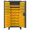 36" wide, 12 gauge, lockable cabinet, with 126 blue hook-on bins, recessed door style, gray Mfg Part#: HDC36-126-5295