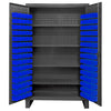 48" wide, 12 gauge, lockable cabinet, with 120 red hook-on bins, 4 adjustable shelves, recessed door style, gray Mfg Part#: HDC48-120-4S1795