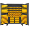 60" wide, 12 gauge, lockable cabinet, with 198 blue hook-on bins, recessed door style, gray Mfg Part#: HDC60-198-5295