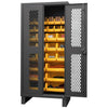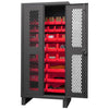 36" wide, 12 gauge, lockable ventilated cabinet, with 30 blue hook-on bins, recessed door style, gray Mfg Part#: HDCV36-30B-5295