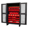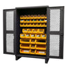 48" wide, 12 gauge, lockable ventilated cabinet, with 42 blue hook-on bins, recessed door style, gray Mfg Part#: HDCV48-42B-5295