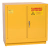 These Under Counter and Wall Mount cabinets feature double wall construction of 18–gauge steel with 1 ½" air space between walls. Added features include durable baked–on powder coat finish, dual 2"external vents with fire baffle and vent covers, leakproof 2" door sill, full length piano hinges on doors and three–point latch and key lock system to secure contents. Self–closing doors have fusible links that melt at 165°F, automatically closing the doors and protecting your work place. Large "FLAMMABLE – KEEP FIRE AWAY" label in three languages. Meets OSHA and NFPA Code 30 specifications.