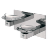 Model 1011 Hi-Lo wall mounted barrier-free drinking fountain shall include dual 18 gauge Type 304 Stainless Steel satin finish basins with integral swirl design, 14 gauge Type 304 Stainless Steel wall bracket, 100% lead-free waterways, push-button operated stainless steel valves with front-accessible cartridge and flow adjustment, polished chrome-plated brass vandal-resistant bubbler heads with integral laminar anti-squirt flow, chrome-plated brass vandal-resistant waste strainers, vandal-resistant bottom plates, stainless steel satin finish back panel, high and low fountain mounting levels, and 1-1/4" O.D. (3.2 cm) waste pipes.