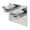 Model 1011HPS Hi-Lo wall mounted barrier-free drinking fountain shall include dual 18 gaugeType 304 high-polished stainless steel finish basins with integral swirl design, 14 gauge Type 304 high-polished stainless steel wall bracket, 100% lead-free waterways, push-button operated stainless steel valves with front-accessible cartridge and flow adjustment, polished chrome-plated brass vandal-resistant bubbler heads with integral laminar anti-squirt flow, chrome-plated brass vandal-resistant waste strainers, vandal-resistant bottom plates, high-polished stainless steel finish back panel, high and low fountain mounting levels, and 1-1/4" O.D. (3.2 cm) waste pipes.