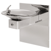 Model 1011HPSMSHO2 Hi-Lo ADA wall mounted touchless drinking fountain with mounting system shall include dual 18 gauge Type 304 polished stainless steel basins with integral swirl design, 14 gauge Type 304 polished stainless steel wall brackets, polished stainless steel back and access panels allowing for front access of P-trap and stop, in-wall mounting frame, 100% lead-free waterways, touchless sensor operated stainless steel solenoid valves controlled by a transformer, polished chrome-plated brass vandal-resistant bubbler heads with integral laminar anti-squirt flow, chrome-plated brass vandal-resistant waste strainers, vandal-resistant bottom plates, high and low fountain mounting levels, and 1-1/4" O.D. (3.2 cm) waste pipes.