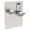 Model 1011HSA.8 RIVIVE™ Hydration Station™ vandal-resistant wall-mounted ADA chilled drinking fountain and recessed motion-activated bottle filler features dual 18-gauge Type 304 Stainless Steel satin finish basins with integral swirl design, 14-gauge Type 304 Stainless Steel wall brackets, 100% lead-free waterways, vandal-resistant push-button operated stainless steel valves with front-accessible cartridge and flow adjustment, polished chrome-plated brass vandal-resistant bubbler heads with integral laminar anti-squirt flow, chrome-plated brass vandal-resistant waste strainers, vandal-resistant bottom plates, stainless steel satin finish back panel and louvered intrusion-proof grill, high and low fountain mounting levels, and 1-1/4" (3.2 cm) O.D. waste pipes. Bottle filler includes a 3000 gallon (11356 L) capacity, Electronic Lifecycle Control filter cartridge, with filter replacement indicator light, LED lighted 12" sensor operated bottle opening with quick 1.1 gpm fill rate and laminar flow with front access for changing filter, smart energy savings feature powers down refrigeration system after 2 hours of non-use, auto purge feature automatically cycles water once every 24 hours, display menu which shows sensor range adjustment, factory reset, software/firmware version readout and error readout, along with bottle counter showing number of bottles saved, and vandal-resistant sensor resists scratching and water droplet fowling. The refrigeration system is hermetically sealed and delivers a minimum of 8 gph (30.3 L) of water at 50° F (10° C) cooled from 80° F (26.7° C) inlet water at 90° F (32.2° C) ambient. 115 Volts, 60Hz, rated watts: 370, full load amps: 5