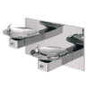 Model 1011MSHO2 Hi-Lo ADA wall mounted touchless drinking fountain shall include dual 18 gauge Type 304 Stainless Steel satin finish basins with integral swirl design, 14 gauge Type 304 Stainless Steel wall brackets, stainless steel satin finish back and access panels allowing for front access of P-trap and stop, in-wall mounting frame, touchless sensor operated stainless steel solenoid valves controlled by a transformer, 100% lead-free waterways, polished chrome-plated brass vandal-resistant bubbler heads with integral laminar anti-squirt flow, chrome-plated brass vandal-resistant waste strainers, vandal-resistant bottom plates, high and low fountain mounting levels, and 1-1/4" O.D. (3.2 cm) waste pipes.