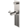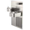 Model 1109.8P ADA vandal-resistant electric wall-mounted water cooler and bottle filler shall include an 18-gauge Type 304 Stainless Steel satin-finish basin, 14 gauge bottle filler bracket, 16 gauge galvanized steel in-wall mounting frame with welded-in heavy-duty 10 gauge mounting plate, vandal-resistant push button operated stainless steel valves with front accessible cartridge and flow adjustment, in-wall 3/16" thick steel mounting plate for the bottle filler, 100% lead-free waterways, polished chrome-plated brass vandal-resistant bubbler head with integral laminar anti-squirt flow, 1 gpm (3.78 L) laminar flow bottle filler, polished chrome-plated brass vandal-resistant waste strainer, vandal-resistant bottom plates, satin stainless steel back panel and louvered intrusion-proof grill, and 1-1/4” NPT trap. The refrigeration system is hermetically sealed and delivers a minimum of 8 gph (30.3 L) of water at 50° F (10° C) cooled from 80° F (26.7° C) inlet water at 90° F (32.2° C) ambient. 115 Volts, 60Hz, rated watts: 370, full load amps: 5. Haws electric water coolers comply with ARI Standard 1010 and ANSI A117.1, and are listed by Underwriter Laboratories to U.S. and Canadian standards. FOR INDOOR USE ONLY