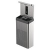 Model 1210SF indoor wall-mount ADA filtered stainless-steel bottle-filling station shall include an ASHRAE compliant, hermetically sealed R-134a refrigeration system with adjustable thermostat. Unit features a unique, modern design with stainless-steel outer shell. Energy savings feature powers down refrigeration system after two hours of non-use, and will automatically start again when used. The unit can also be programmed to shut down during planned facility closures, weekends, etc. Digital LED interface keeps user appraised of programming and error codes. The 3000-gallon (11,356 L) filter with Electronic Lifecycle Control turns water off when capacity is reached. Flow will begin again when new filter is installed. Bottle filler basin drains directly to the units waste. The system includes a bottle filler auto purge every 24 hours, an instantaneous tankless water cooler for consistent cool water, and LED illuminated bottle fill area. 115 Volts, 60Hz, rated watts: 350, full load amps: 5. Dimensions: 18-3/4 x 15-11/16 x 40-3/4". (L x W x H)