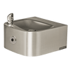 Model 1212S indoor wall-mount ADA Hi-Lo stainless steel water cooler and bottle filler shall include an ASHRAE compliant, hermetically sealed R-134a refrigeration system with adjustable thermostat. Unit features a unique, modern Hi-Lo (dual fountain) design with stainless steel outer shell. Energy savings feature powers down refrigeration system after 2 hours of non-use and the lights shut off, and will automatically start again when used. The unit can also be programmed to shut down during planned facility closures, weekends, etc. Digital LED interface keeps user appraised of programming and error codes. Bottle filler basin drains directly to the units waste. The system includes electronic front push bar controlled solenoid valves, .45 gpm self-regulating, anti-rotational bubbler heads with flexible antimicrobial mouth guards, bubbler heads deactivation feature, bottle filler auto purge every 24 hours, instantaneous tankless water cooler for consistent cool water, and LED illuminated bottle fill area. 115 Volts, 60Hz, rated watts: 350, full load amps: 5. Dimensions: (L x W x H) 18-3/4 x 34-1/16 x 40-3/4"