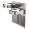 Model 1441HO wall mounted, wheelchair accessible touchless drinking fountain shall include a white powder-coated cast aluminum basin with integral mounting brackets, touchless sensor operated stainless steel solenoid valves controlled by a transformer, 100% lead-free waterways, dual polished chrome-plated brass vandal-resistant bubbler heads, polished chrome-plated brass vandal-resistant waste strainer, vandal-resistant bottom plate, and chrome-plated 1-1/2" NPT trap.