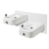 Model 1501HO2 Hi-Lo wall-mounted ADA drinking fountain shall include dual white enameled-iron basins, touchless sensor operated stainless steel solenoid valves controlled by a transformer, 100% lead-free waterways, polished chrome-plated brass vandal-resistant bubbler heads, polished chrome-plated brass vandal-resistant waste strainers, vandal-resistant bottom plates, white powder-coated stainless steel back panel and 1-1/4" NPT traps.
