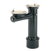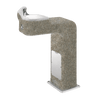 Model 3150FR "Hi-Lo" adult or child barrier-free freeze-resistant, square, wire reinforced concrete pedestal drinking fountain shall include polished stainless steel basins, hood extensions to protect the chrome-plated brass bubbler heads, adjustable height child ADA capable arm, polished chrome-plated vandal-resistant waste strainers that allow for top down access, and push-button activated pneumatic valve system. Portland Gray in color with exposed aggregate finish and wire reinforced, and 1-1/2" slip.