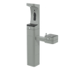 Model 3610 outdoor, ADA pedestal bottle filler shall include a heavy duty stainless-steel pedestal with matte silver powder-coating, push-button operated stainless steel valve with front-accessible cartridge and flow adjustment, large-opening bottle filler with quick-fill 1 gpm flow rate, 100% lead-free waterways, vandal-resistant access plate, integral mounting feet, and 1-1/2" slip waste.