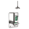 Model 8355WCC barrier-free, wall-mounted, fully recessed combination shower and eye/face wash features the medically acclaimed AXION MSR eye/face wash head assembly (patent pending). The revolutionary inverted flow design is the only product on the market that provides a Medically Superior Response consistent with all EMT, emergency room and doctors' office protocols by sweeping contaminants away from the vulnerable nasal cavity. Traditional eye washes irrigate from the outside edge of the eye back toward the nose, where contaminants can then be flushed into the nasal cavity through the lacrimal punctum, nature's ocular cavity drain. AXION MSR also offers a new hydrodynamic shower design that minimizes the strong physical pressure that drives the water to the outer rim of normal showerheads, making the distribution equal across the entire footprint of the flow. Better use of the water flowing through the shower makes it more effective while providing a more comfortable environment by breaking the streams of water into smaller individual droplets.