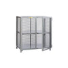 These stationary security cabinets measure only 52" overall height. Small diamond shaped openings and heavy gauge steel provide maximum security for small items. The double doors swing open 270 degrees, and feature padlockable slide latch. 48" interior cabinet height. 4" underclearance. All-welded steel construction with durable powder coated finish.